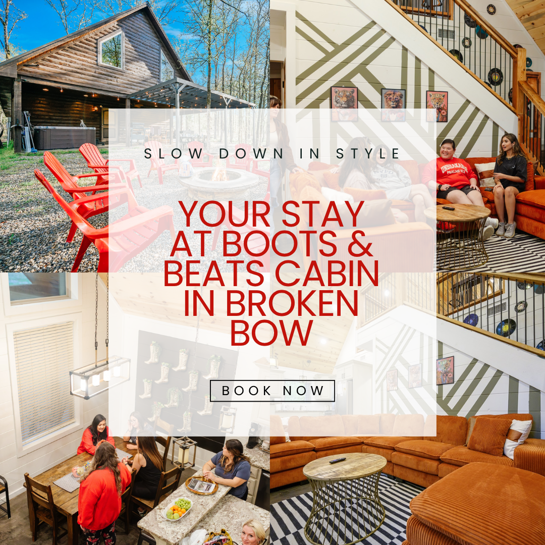 Looking for a stay that lets you truly unwind? Book your time at Boots & Beats Cabin and enjoy a slower, more intentional kind of getaway in Broken Bow.